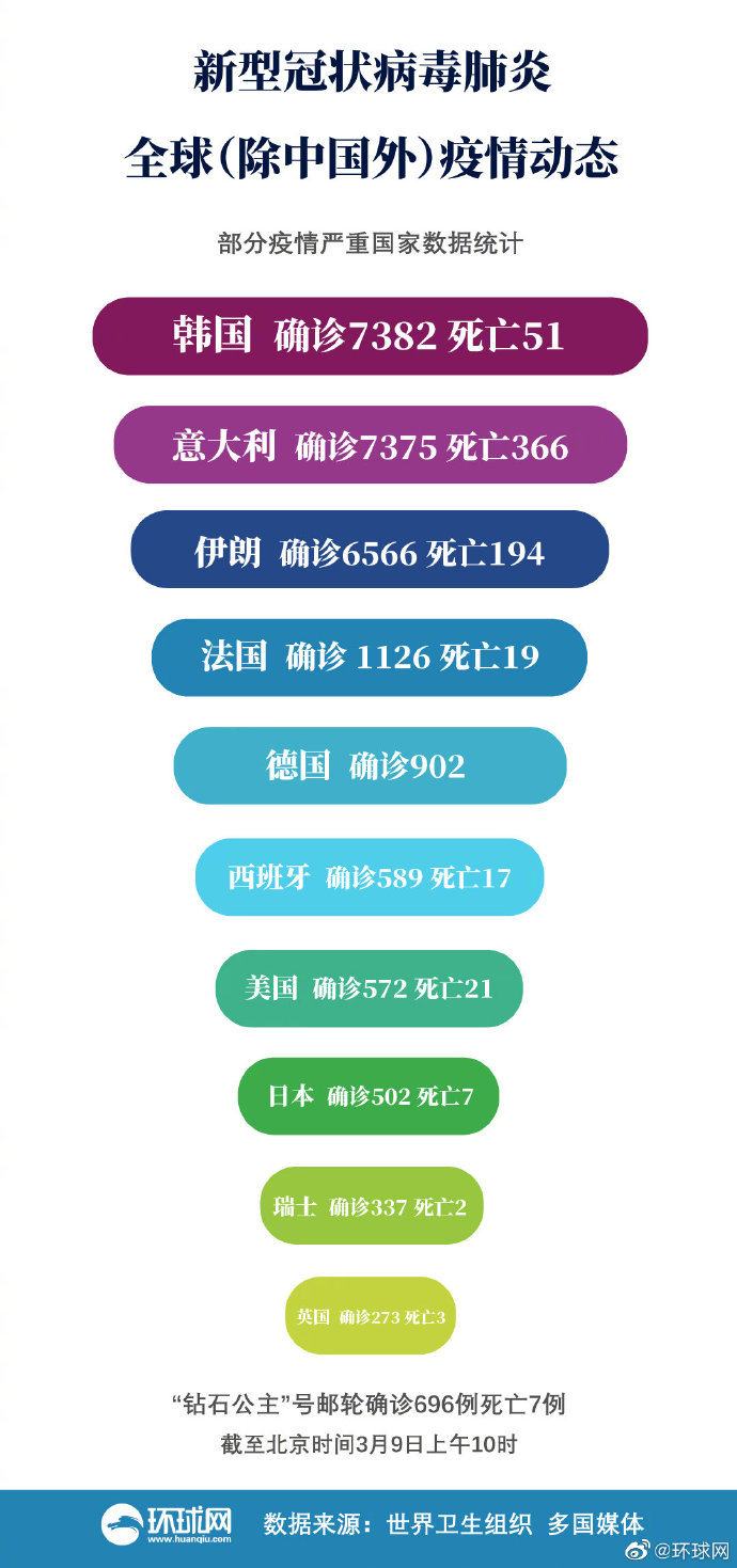 综合外媒报道和数据统计,截至北京时间3月9日10时,