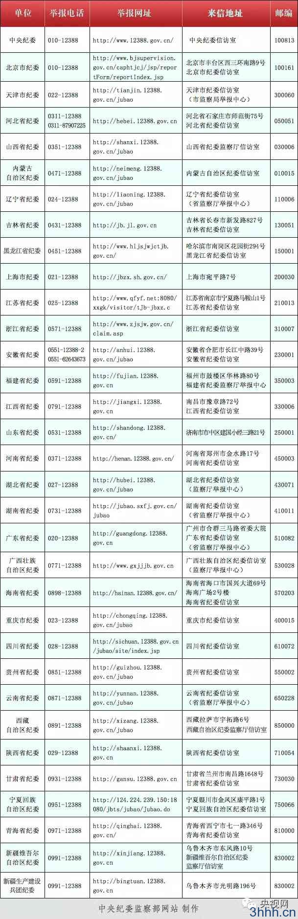 中纪委集中公布各地纪委举报电话: i3h.cn/3172