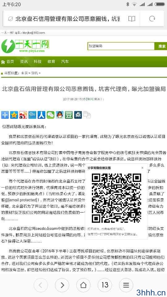 曝光诚信网站认证加盟骗局: i3h.cn/4320