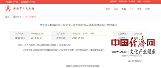《西安市全域旅游示范市创建实施方案》印发