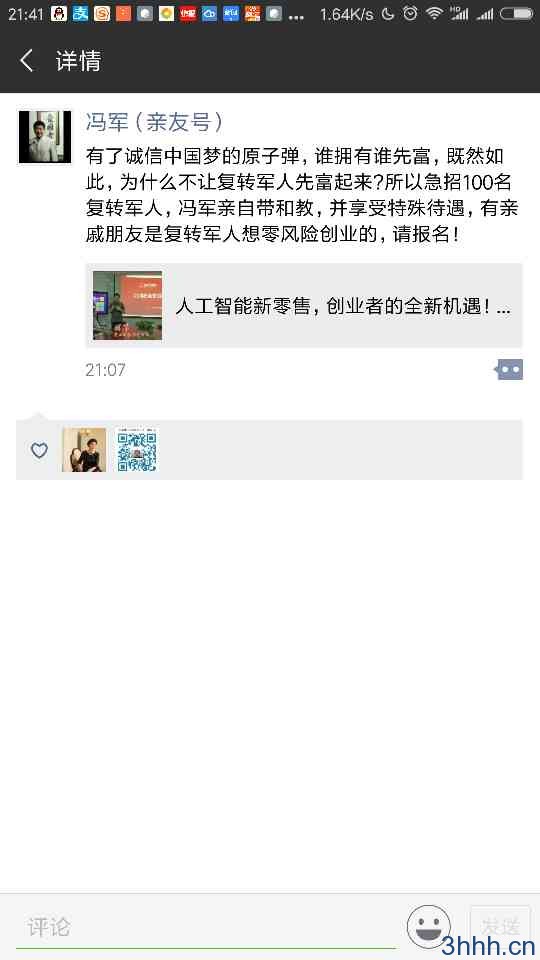 【朋友圈.cn】有亲戚朋友是复转军人想零风险创业的,请报名!