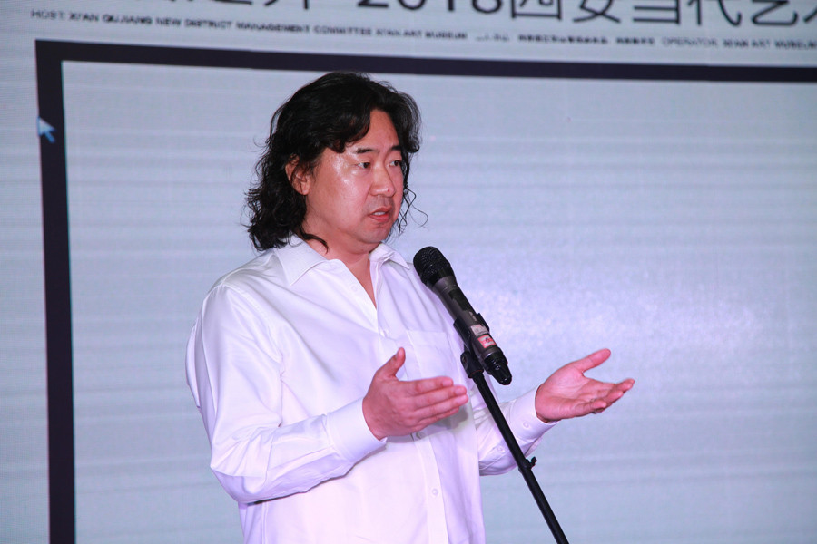 本次展览学术主持彭德先生讲话表示2018西安当代艺术展,加入了国际因素。以开放的心态,直面艺术的变迁,投身当代艺术,让展览走进当代城市生活,让城市文化长足发展。