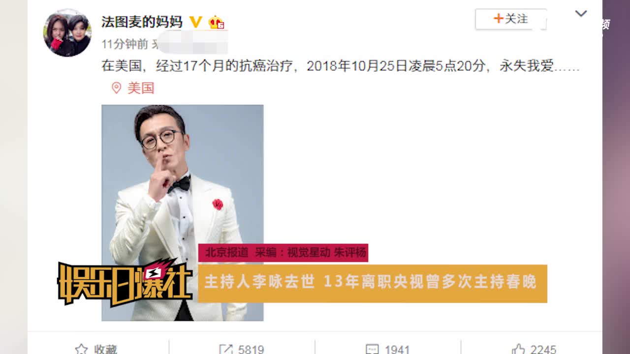 老东家央视发文悼念李咏:感谢你把欢乐留给观众