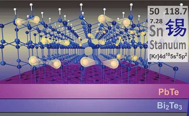 锡的超导电性已被发现一百多年了,但这个现象仅存在于白锡(β-Sn)中。锡的另一个常见的相是灰锡(α-Sn),它是半金属,不具有超导电性。近些年,人们认识到灰锡是一种拓扑绝缘体。著名物理学家、清华特聘教授张首晟曾预言,沿晶体某一特殊方向的单层灰锡—锡烯(stanene)—具有类似于石墨烯的六角结构,可能具有室温量子自旋霍尔效应等一系列重要的拓扑物性。清华大学薛其坤教授、何珂教授研究组利用分子束外延生长技术,在硅衬底上制备出铋碲(Bi2Te3)和铅碲(PbTe),最终在铅碲(PbTe)上生长出了高质量大面积平整的锡烯薄膜。